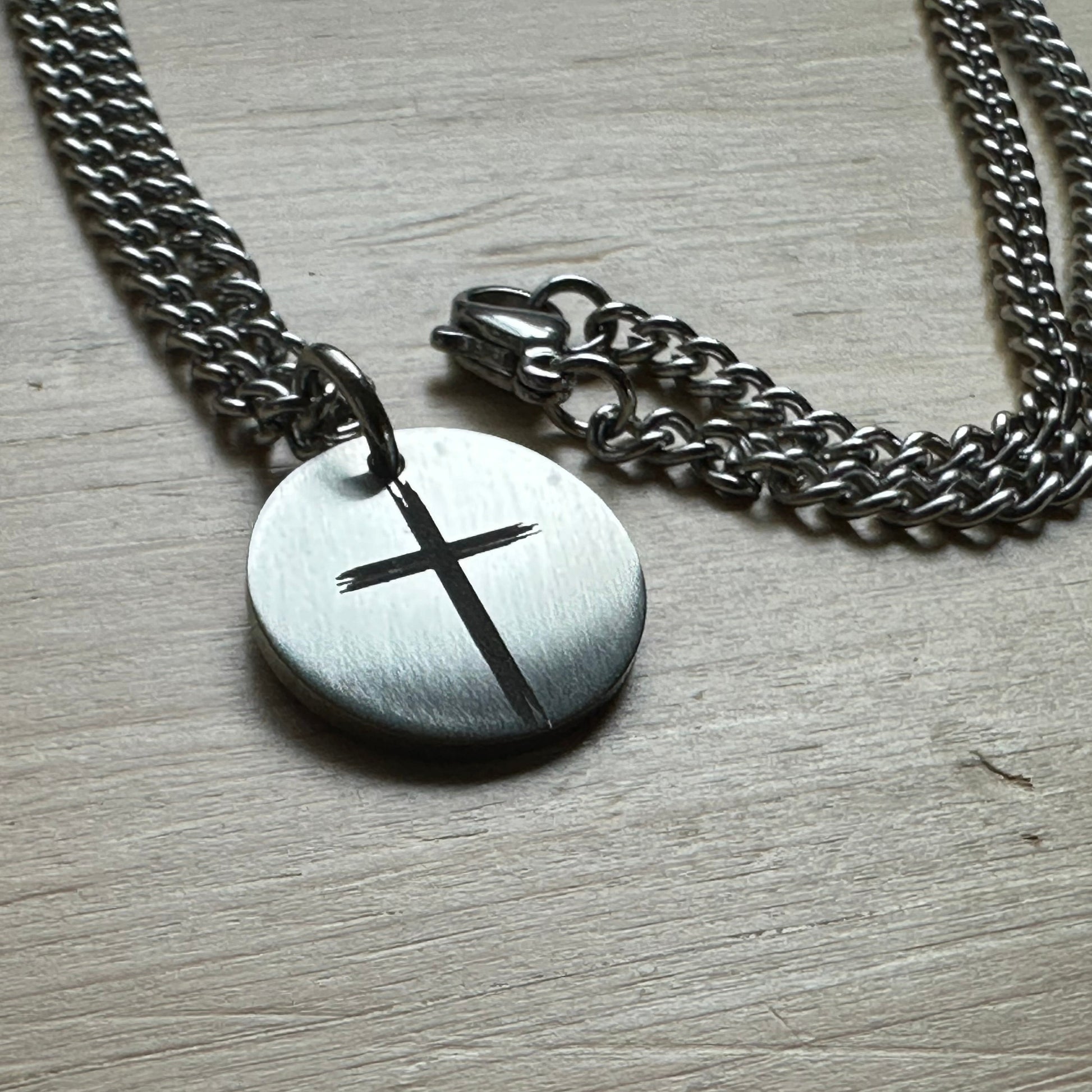 Stainless Steel 3/4" circle pendant on a 22" durable curb chain.