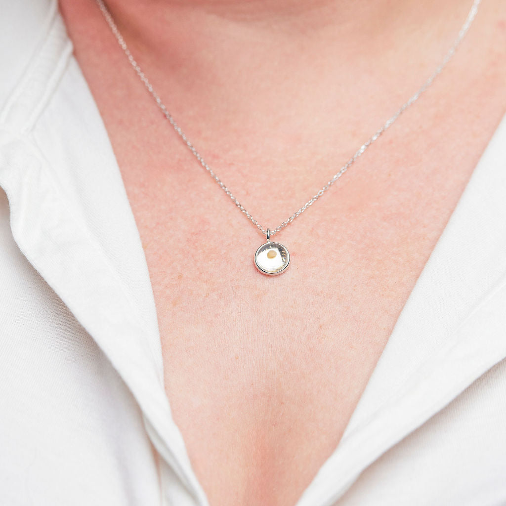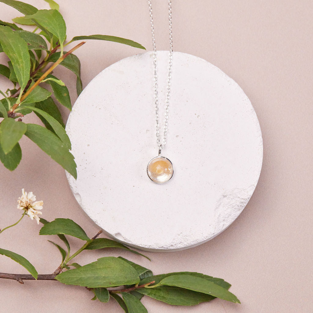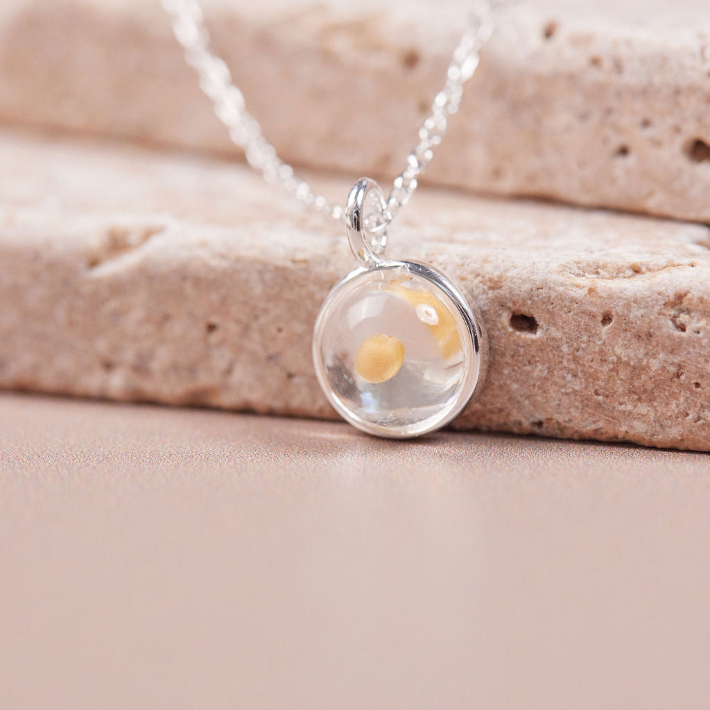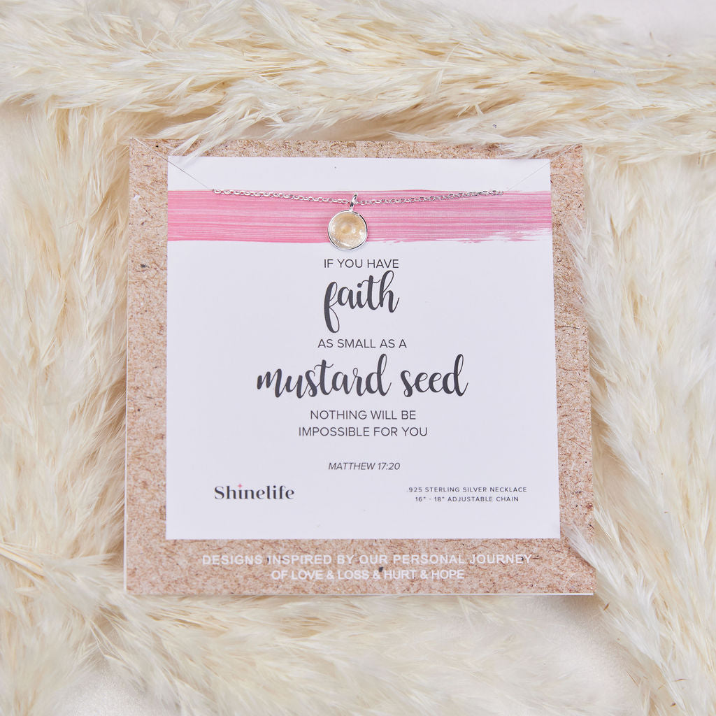 Glass pendant (10mm) holds a real mustard seed | 16-18” sterling silver cable chain included