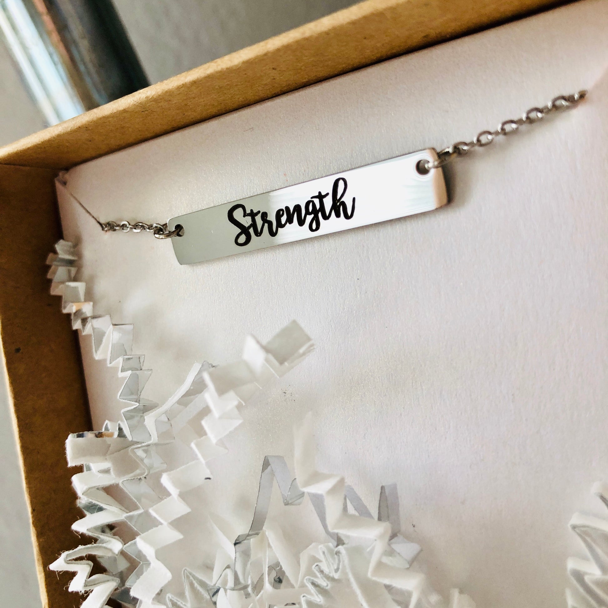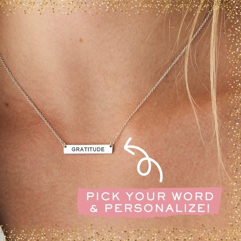 This necklace features a beautiful and durable, hypoallergenic, waterproof, tarnish-proof stainless steel bar (1.5" x .20") or tag (1.25" x .20) personalized with the text of your choice. Includes an 18" stainless steel chain. A perfect gift for Christmas, birthday, or for yourself any day.
