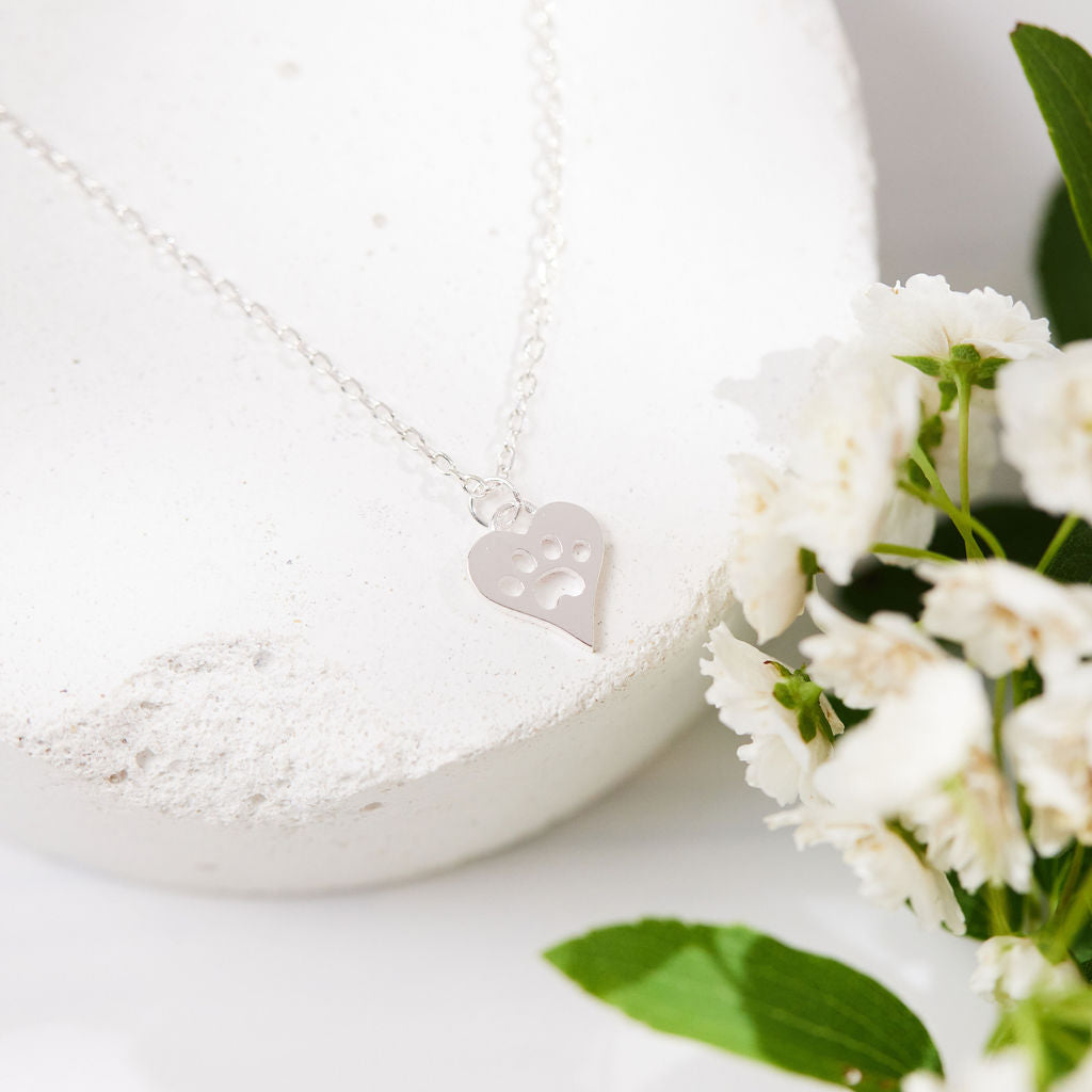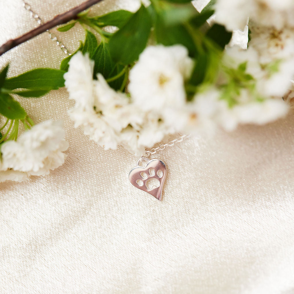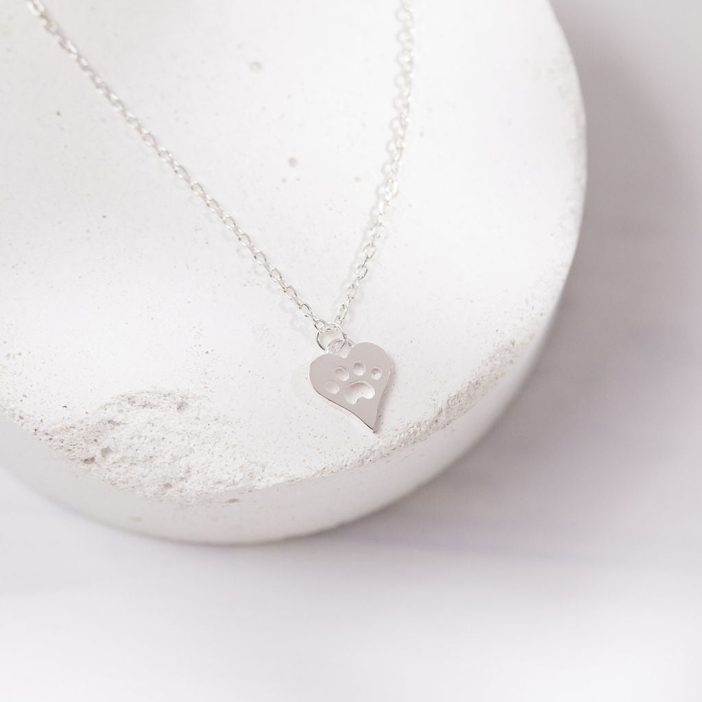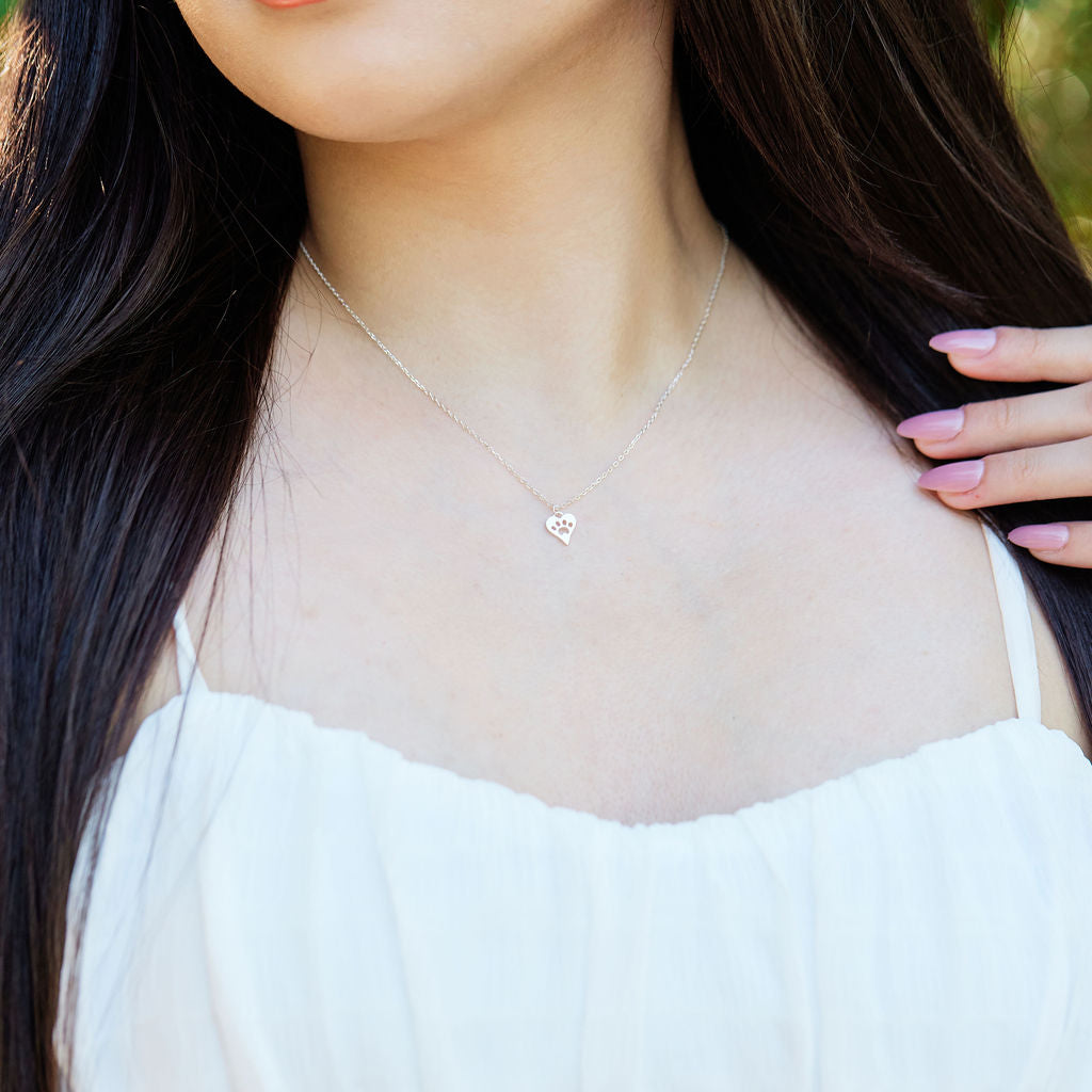Teeny tiny sterling silver heart with paw charm measures approx 8mm x 13mm | Necklace includes an adjustable 16" + 2" sterling silver cable chain.