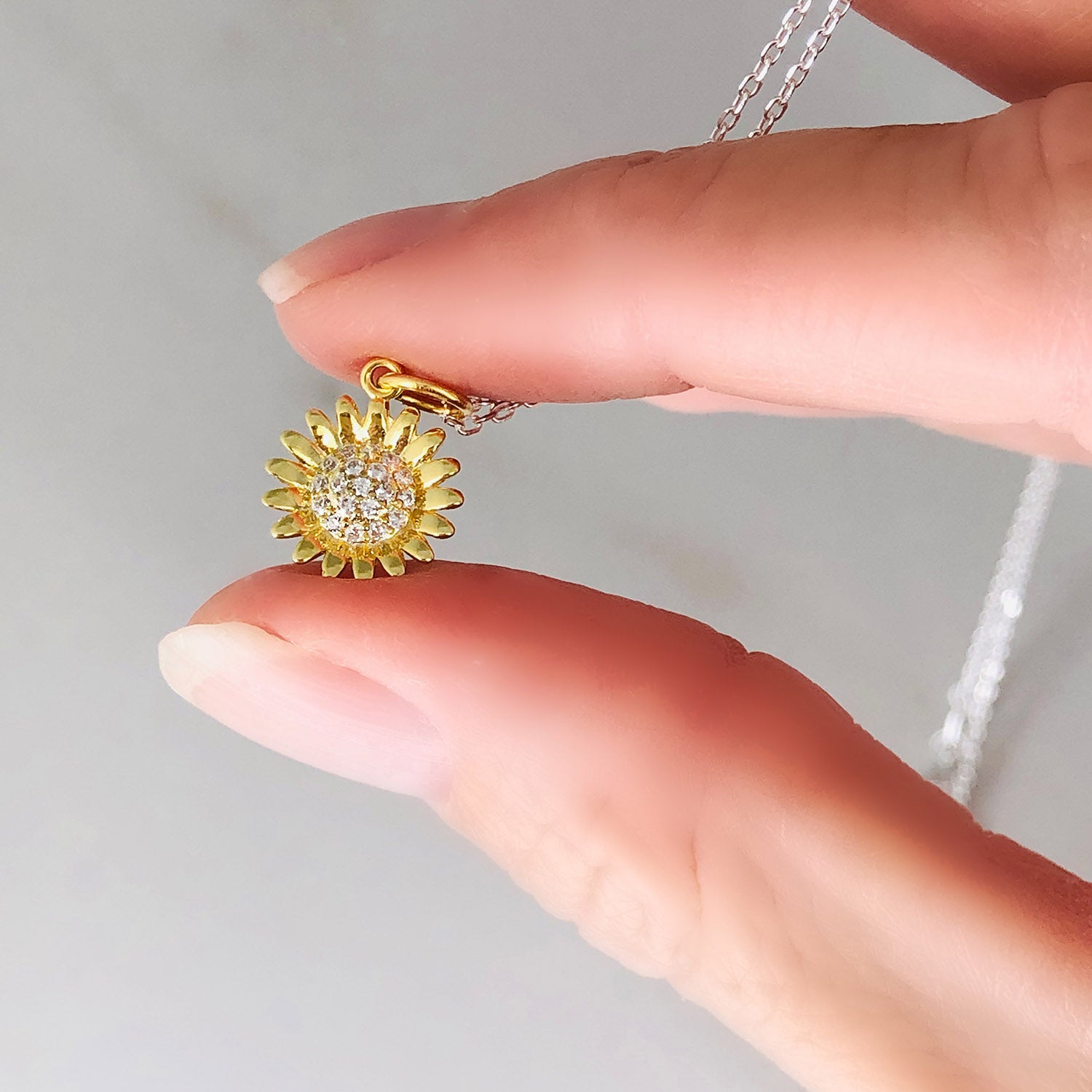 14k vermeil & cubic zircon charm on 16-18” adjustable sterling silver chain.